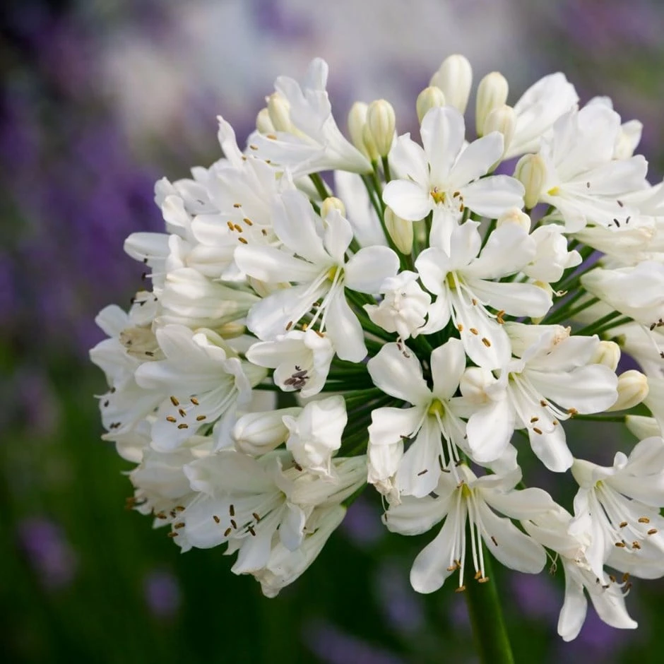 This relatively new form has semi-evergreen foliage, and large heads of white trumpet-shaped flowers, which appear on the upright stems in mid- to late summer. It looks wonderful when used in pots, but it is also ideal for lining the edges of a pathway or filling gaps in a sunny border.