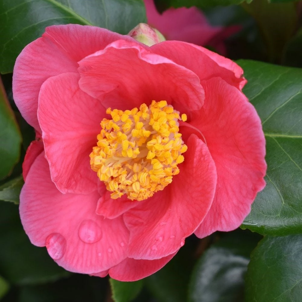 Get the growing season off to a great start with this compact evergreen, which starts to produce its large, semi-double flowers from late winter onwards. The petals have a slightly ruffled appearance, and these frame a cluster of golden stamens, which are more prominent on some of the flowers. It makes a handsome addition to a large pot (filled with ericaceous compost), and even when not in bloom, the lustrous foliage will offer year-round colour.