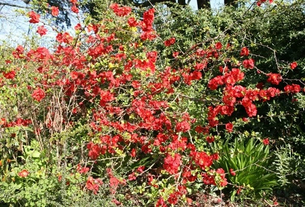 Ornamental quinces bring a welcome flush of colour to the garden in spring, when their bare twigs are smothered in flowers before the glossy, dark green leaves appear. ‘Crimson and Gold’ has striking, cup-shaped, bright red flowers with conspicuous yellow centres from March to May, followed by aromatic, greenish-yellow fruit. This easy-to-grow, deciduous shrub is excellent for a partly shaded border with moderately fertile, well-drained soil and looks stunning trained against a wall. A popular compact variety, it’s perfect for the smaller garden or where space is limited. The fruit can be eaten when cooked.