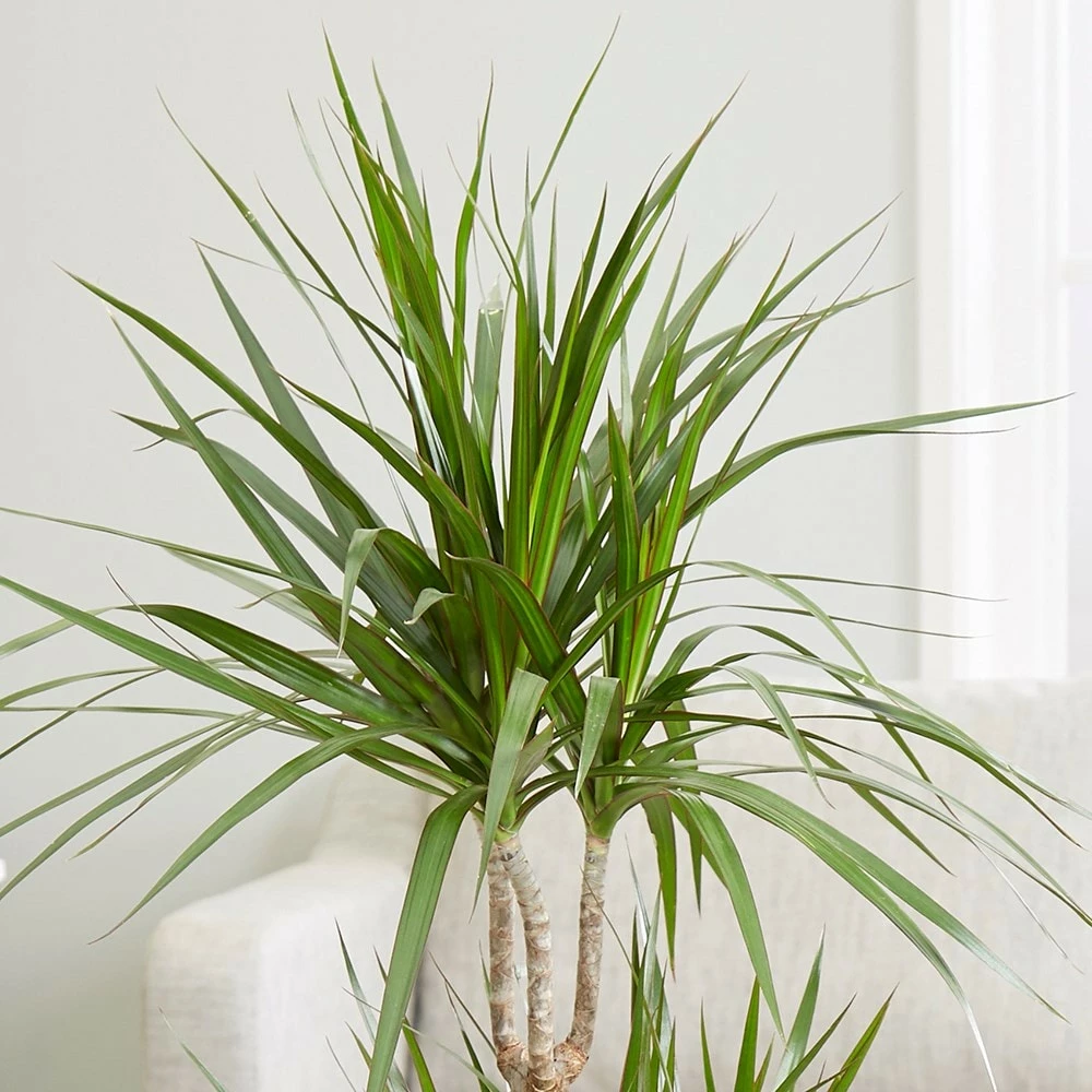 Possibly one of the most popular dracaenas, it has slender, predominantly green leaves, many of which have a fine red edge running down their length. These form at the tops of the upright stems, giving the plant an attractive shaggy-headed appearance.