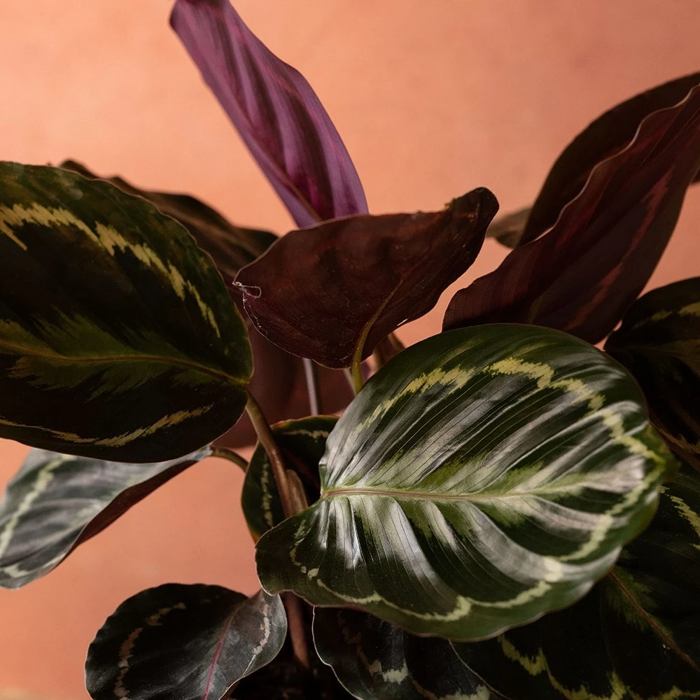 Originating from Ecuador, a warm, humid environment of a bathroom or kitchen is the perfect place for ‘Medallion’. This upright, tender evergreen perennial has large oval, painterly-patterned leaves in shades of cream and green with maroon undersides, held on short-stalks.
