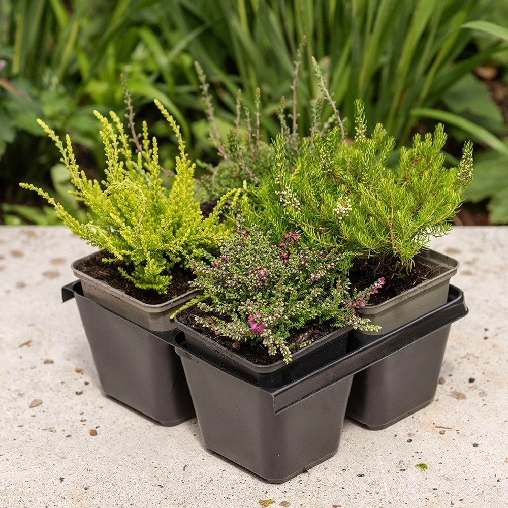 A delightful mix of four hardy heather varieties, specially chosen for their long-lasting and colourful flowers. While we can’t specify the exact varieties received, this starter pack contains a diverse blend of heathers sure to enhance your garden. Grown in acidic soil, these adaptable evergreen shrubs are low maintenance once established, and you’ll enjoy cheerful blooms in shades of purple, pink, and/or white that appear at different times from late summer through spring. The small leaves also provide interest, with hues ranging from green to grey to reddish-orange. Plant these tough yet delicate beauties together to create a sweeping carpet of texture and colour that look wonderful in beds, borders, rock gardens, and containers.