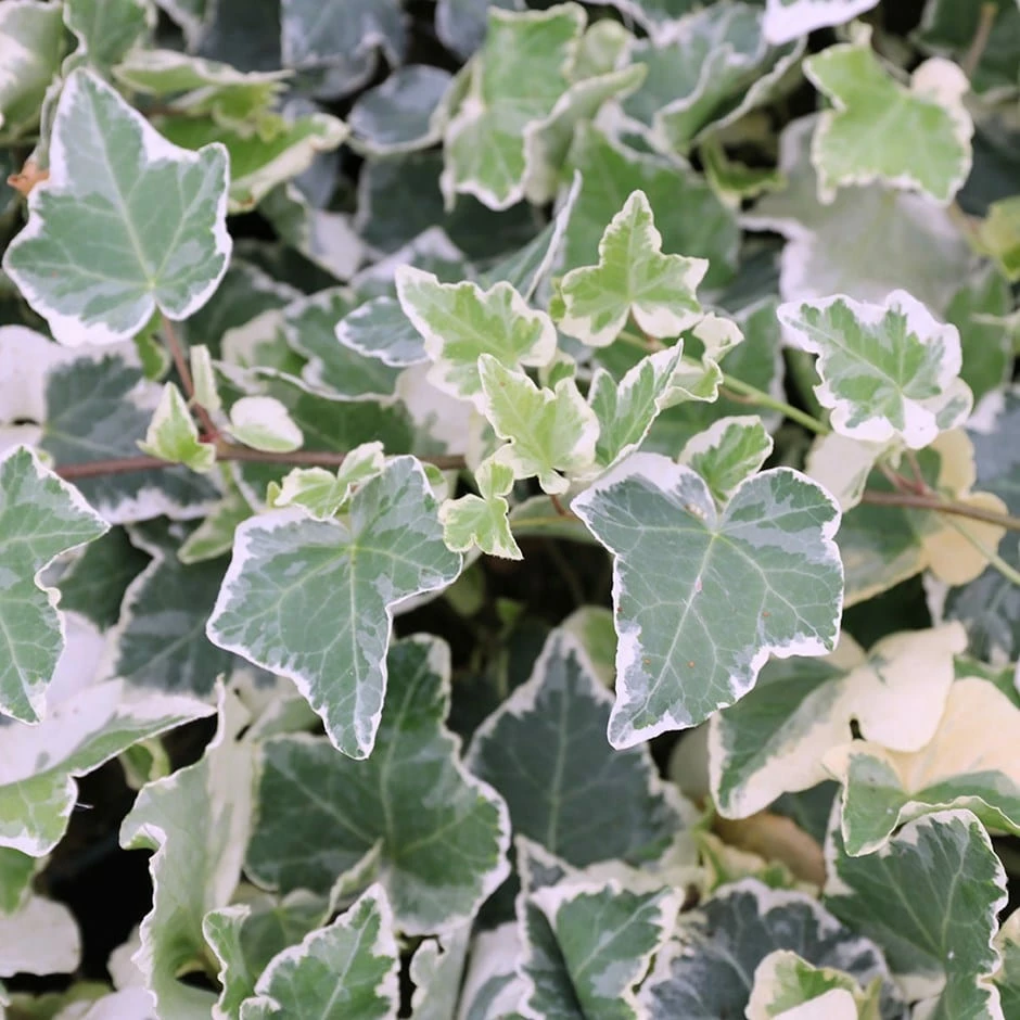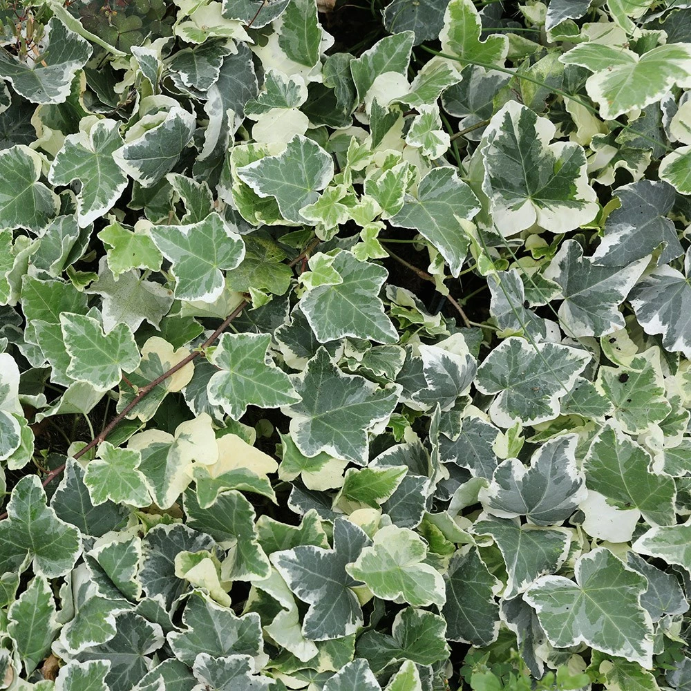‘Clotted Cream’ is an evergreen shrubby climber with five-lobed leaves which are dark green and pale grey-green variegated with cream. Strongly frilled margins develop as the foliage matures giving a reflexed or wavy appearance which is quite striking. Growing to modest heights, ‘Clotted Cream’ is often used as a houseplant or for adding height to a narrow obelisk within a container but will perform admirably and be attractive to nectar-seeking insects if grown outdoors.