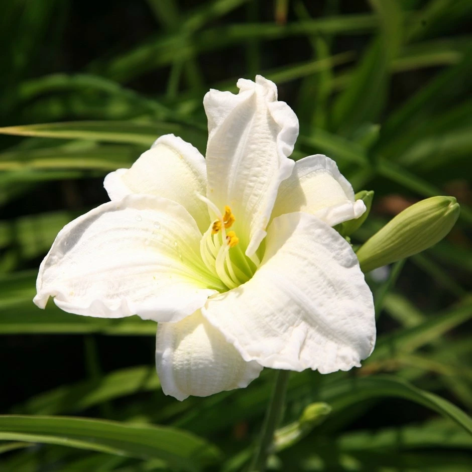 Masses of ivory-white flowers lasting just one day appear continuously in midsummer on slender, upright stems. In mild areas it is semi-evergreen and forms large clumps of strap-like leaves, valuable for suppressing weeds and disguising the dying foliage of spring-flowering bulbs. This elegant daylily looks gorgeous planted in drifts in a sunny mixed or herbaceous border, or beside a pond or water feature. Like most hemerocallis, it is robust and easy to grow, provided you follow the tips below.