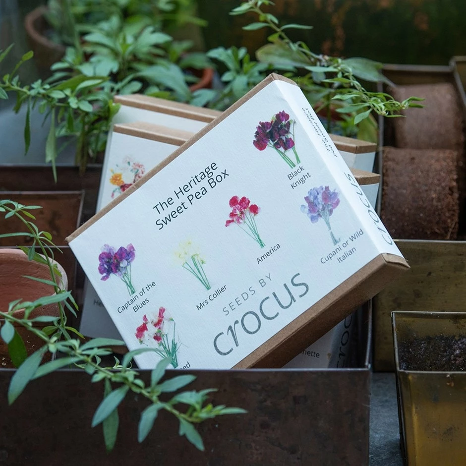 A heritage collection of 6 sweetly-scented sweet pea seeds in a decorative gift box.