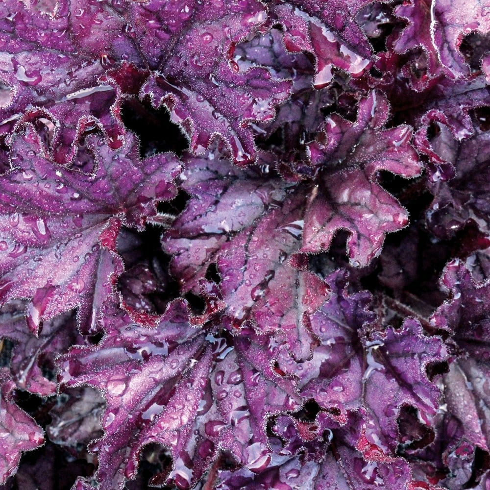 ‘Forever Purple’ is an amazing, compact herbaceous perennial with glossy, lobed, deep purple leaves with fluted edges that last well throughout the year. Purple-pink flowers on very short spikes appear throughout the summer and their shorter stems are well suited to more exposed sites. Heucheras are superb great for adding contrast and texture to surrounding plants, either in mixed plantings or containers.