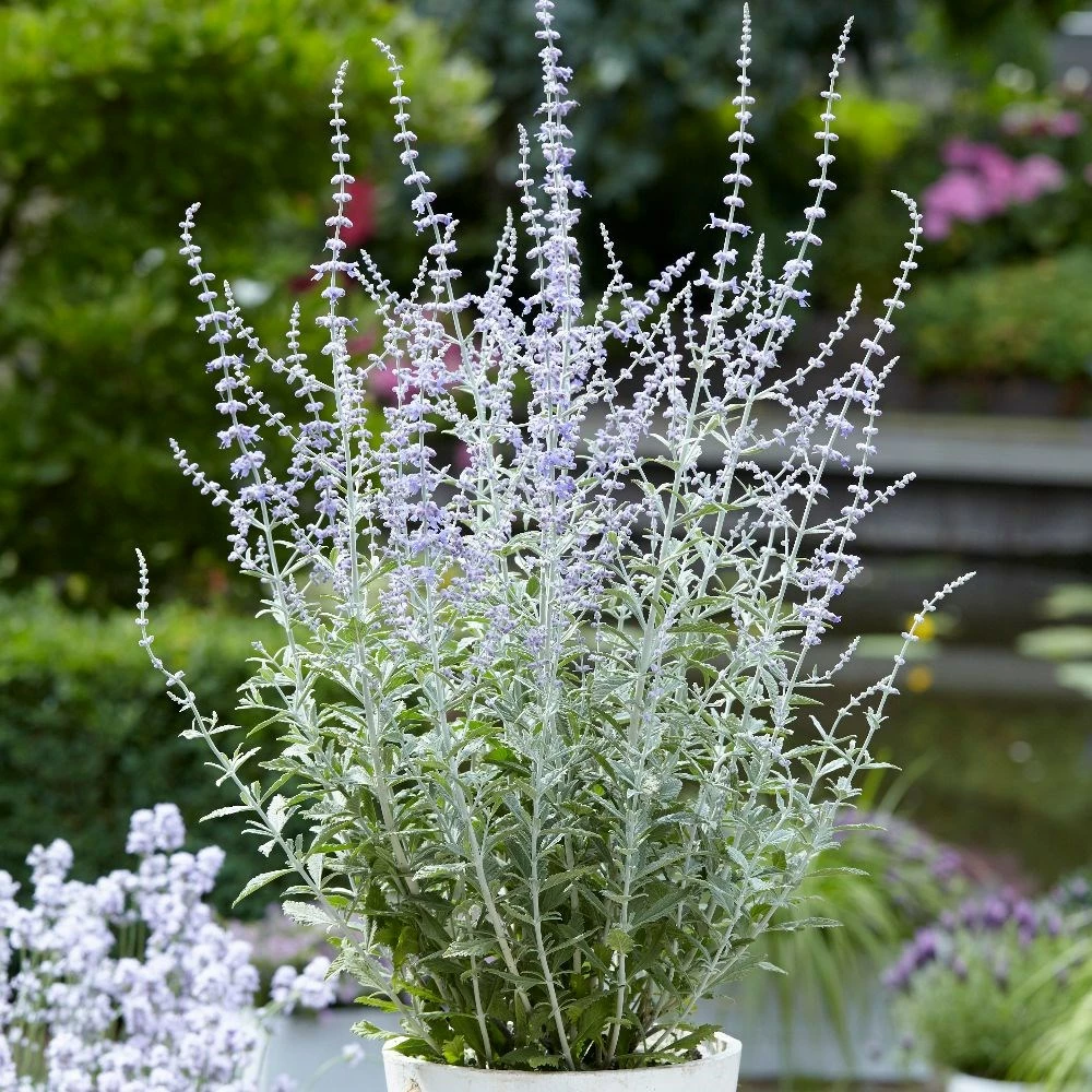 When planted in generous drifts, this new form will create a shimmering haze of late colour. Perfect for hot, sun-drenched positions, it will take drought in its stride once established, and its aromatic, silvery foliage and terminal clusters of lavender blue flowers will help create a Mediterranean feel. It practically thrives on neglect and it can also cope with dry, chalky soils and coastal conditions.