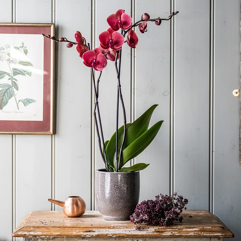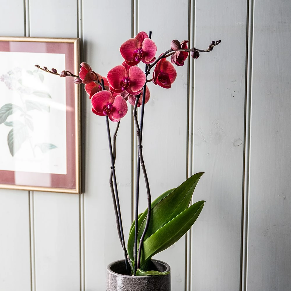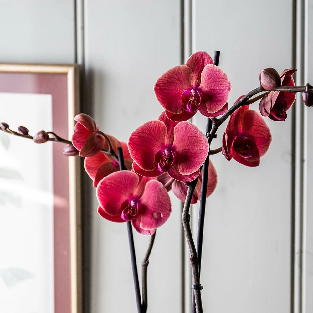 Don’t worry if the roots grow outside the pot. In their native environment, they grow in the crooks of branches, and use these aerial roots to absorb water from the air. They do not mind being overcrowded in their pots, so you only need to repot them when the growth starts to suffer. They usually only send up flower spikes once a year, however you may encourage a second flush of flowers to form more quickly if you trim back the stem to just above the first node immediately after they have finished flowering. They prefer even temperatures, so try not to have big drops at night time.