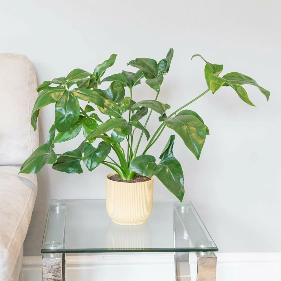 An impressive evergreen plant grown for its large, dramatically spiralling stems and shiny emerald-green foliage. As it matures, the huge leaves open out to give the appearance of long green fingers, that are divided into 10-20 leaflets, borne on spiralling stems, measuring between 20-40cm in length. Originating from warmer forests in South America, this wonderful plant will really add a touch of the tropics to your home.