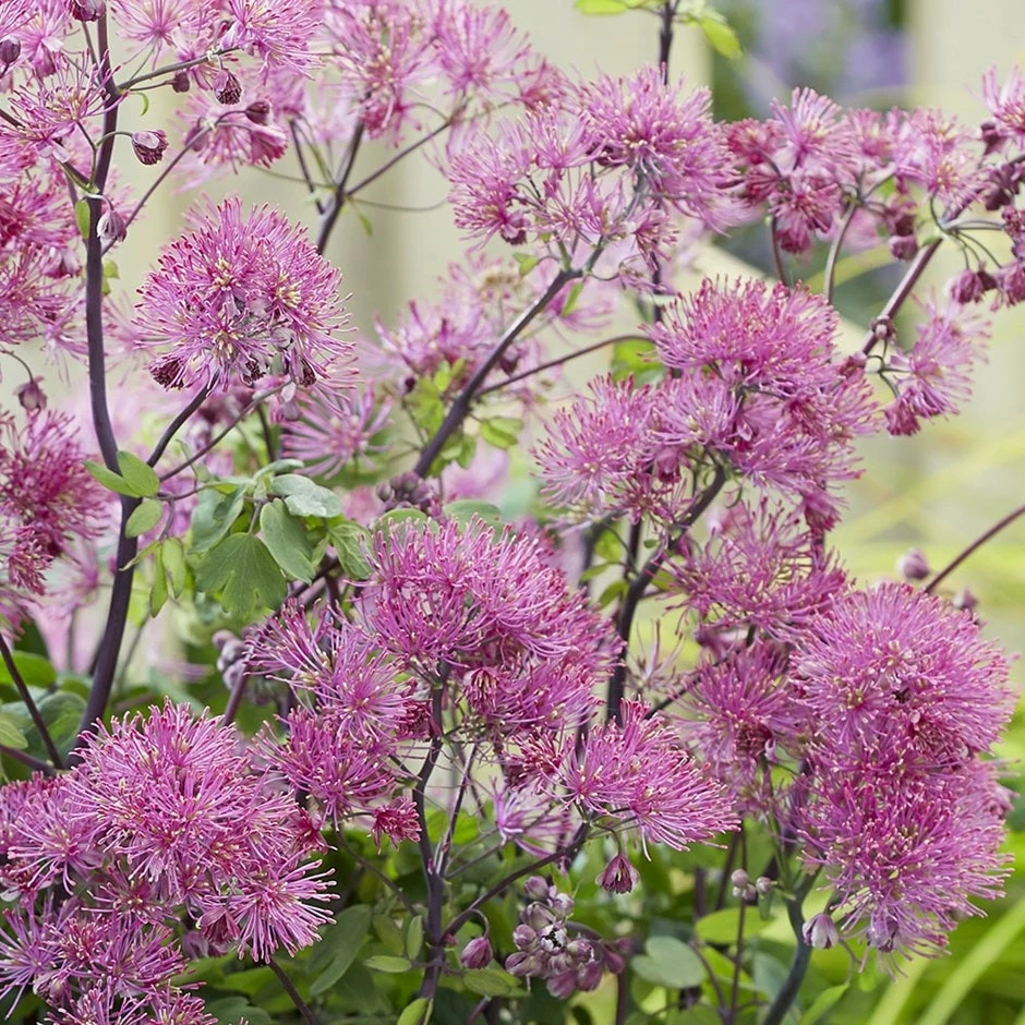A dwarf, airy, fluffball-flowering perennial for drifts in the front of the herbaceous border or subject for a patio pot. Finely cut foliage, reminiscent of an adiantum fern, ‘Little Pixie’ send up mischievous, frothy pink flowers on dark, slender stems to attract attention from pollinating insects. Ideal for wildlife and cottage gardens where its pastel, hazy clouds will delight all.
